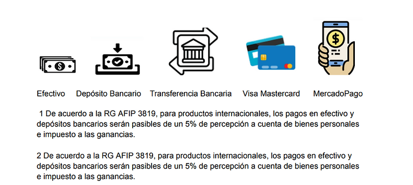 *Tarifas pagaderas en dólares. En caso de abonar en pesos, consultar si es posible ya que se debe agregar impuesto RG 5463 AFIP.